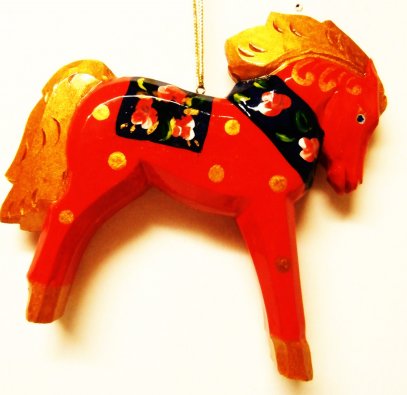 "Horse in Red, 4"H, o69d, Russian Christmas Ornament