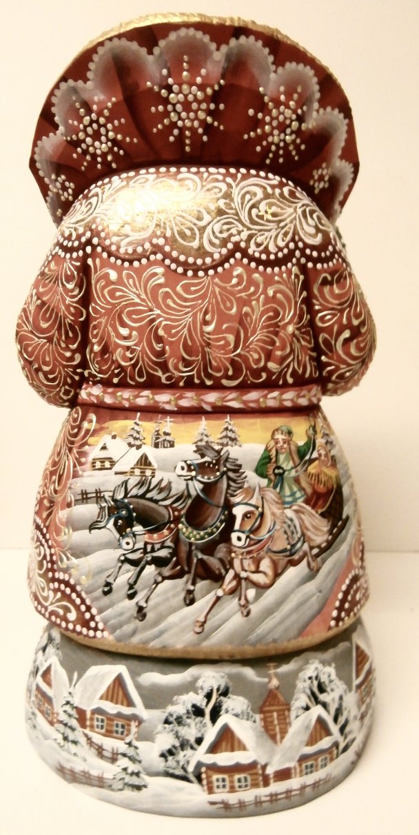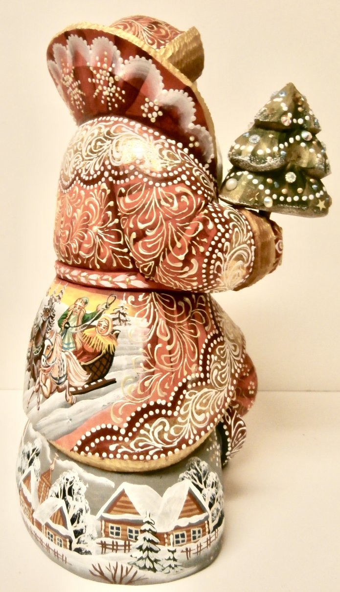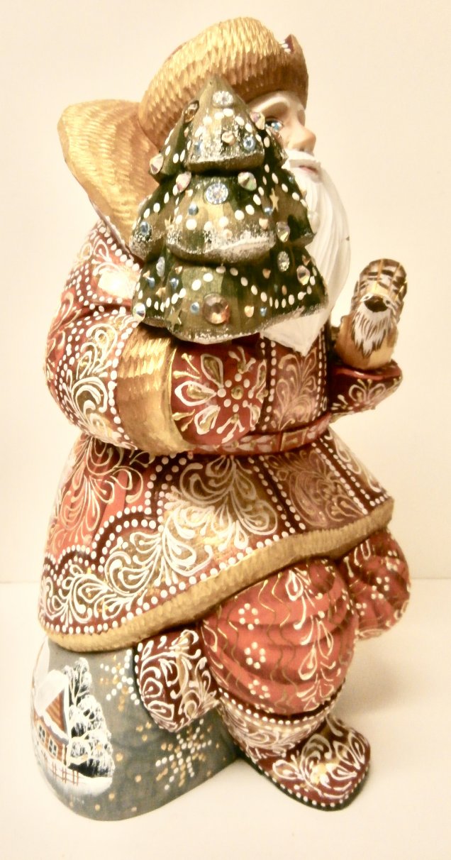 This Russian genuine Santa is handcrafted in Moscow, Russia: carved out of linden wood and painted with acrylic. Workshop "Russkiy Dom", Moscow, Russia.