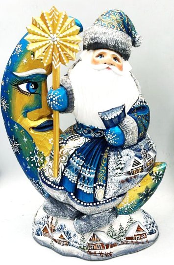 "Jolly Santa on the Moon", 11.5"H, sk40, Russian Wooden Santa