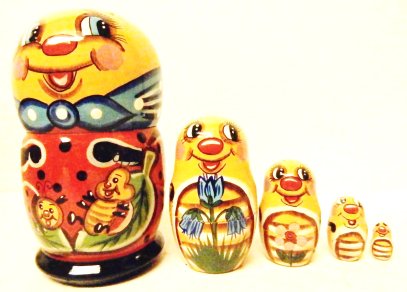 This nesting doll is crafted by hand: made out of linden wood and painted with acrylic. Workshop "Kvitok", Moscow.