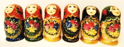 This nesting doll is handcrafted in Moscow, Russia: made out of linden wood and painted with acrylic. Workshop "Russkiy Dom", Moscow, Russia.