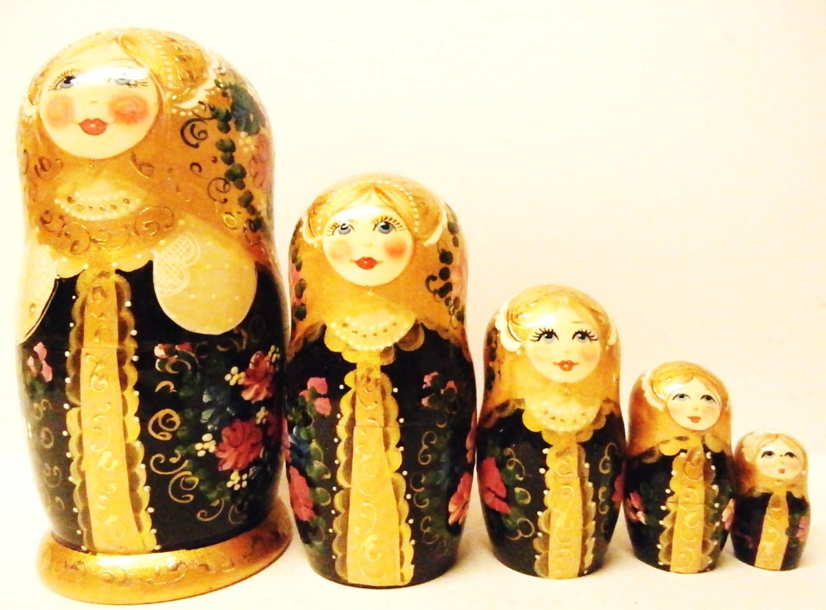 This nesting doll is crafted by hand: made out of linden wood and painted with acrylic. 6.5-6.7"H.