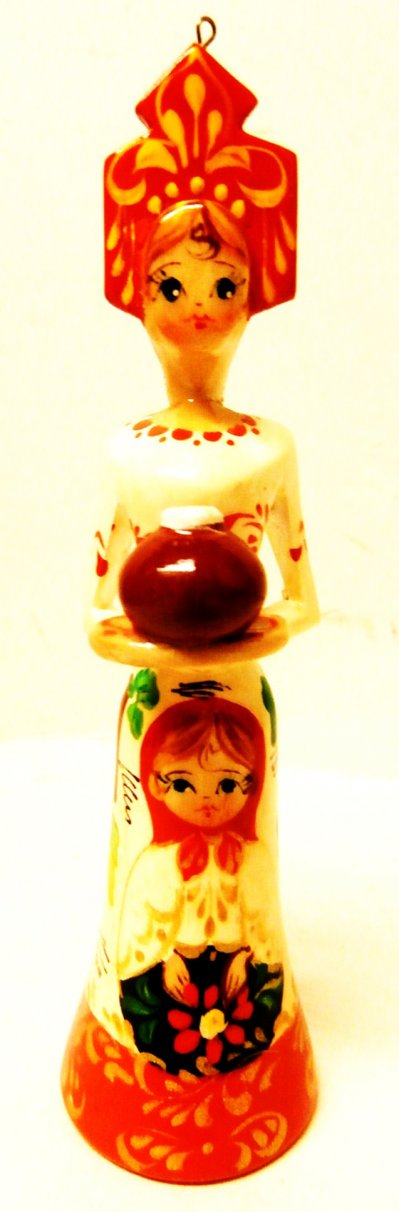 This ornament is crafted by hand out of linden wood and painted with acrylic in the town of Sergiyev Posad, Russia.