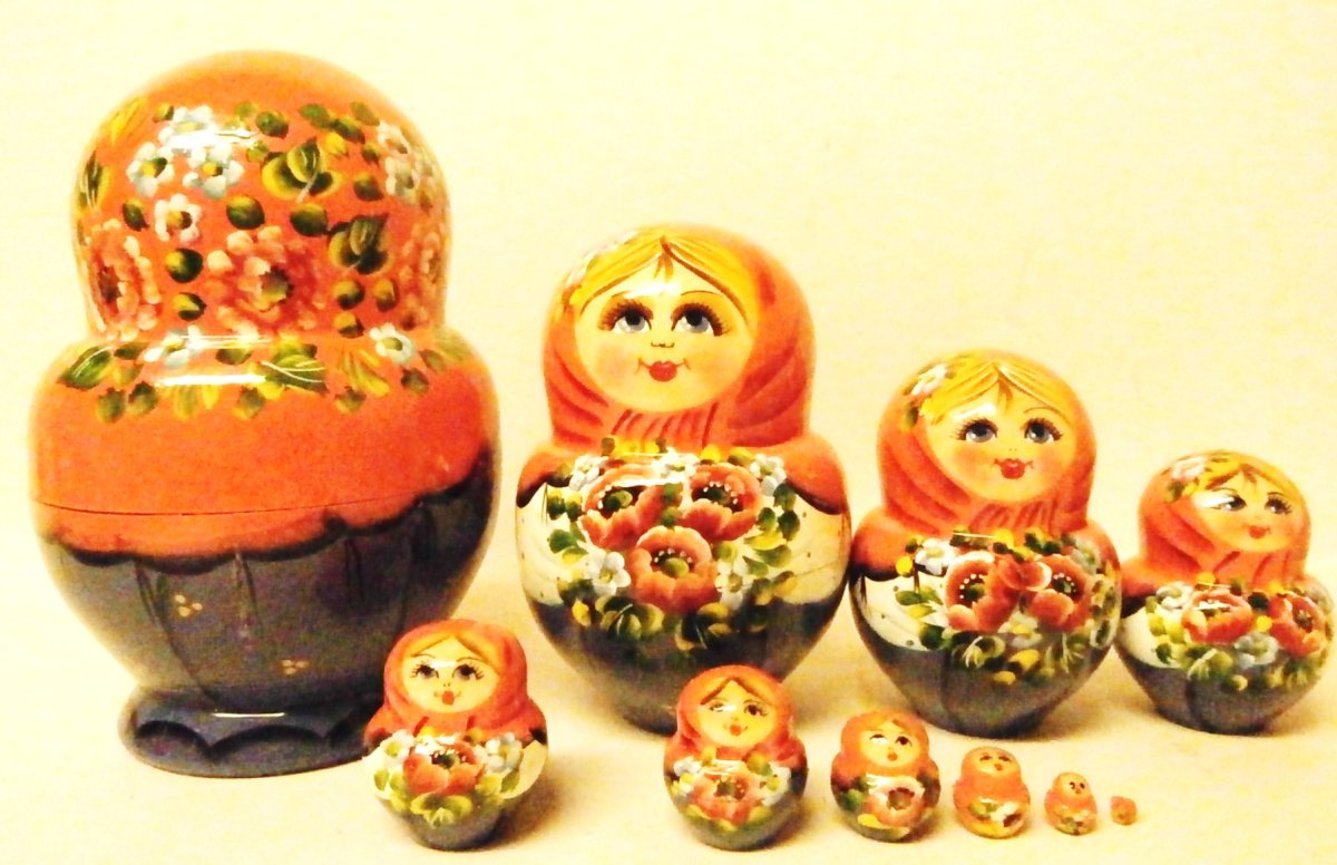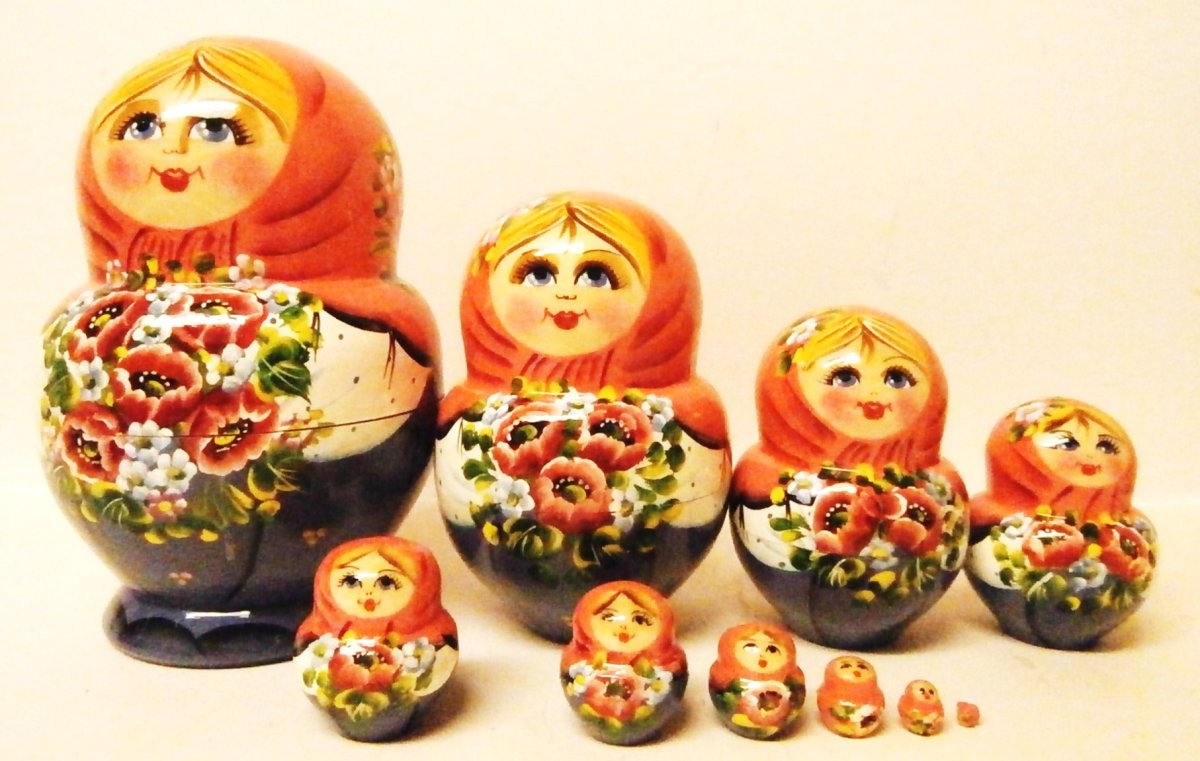 This nesting doll is crafted by hand in Russia: made out of linden wood and painted with acrylic. Workshop "Kvitok". Different shawls's color available.
