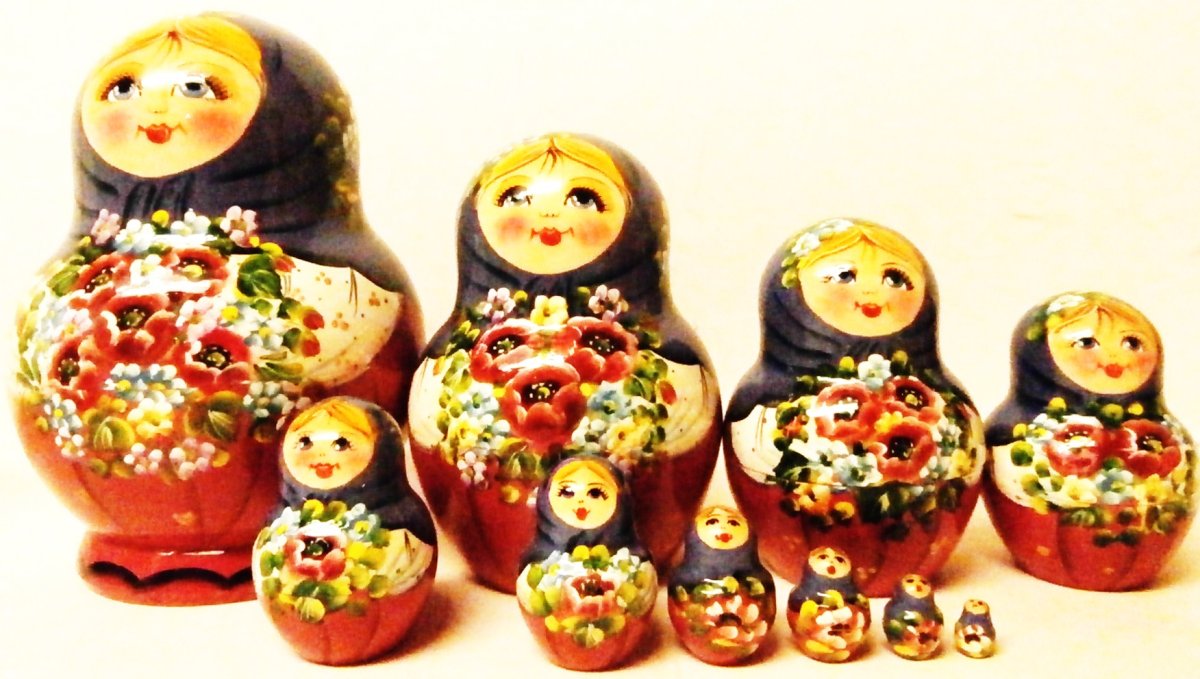 This nesting doll is crafted by hand in Russia: made out of linden wood and painted with acrylic. Workshop "Kvitok". Different shawls's color available.