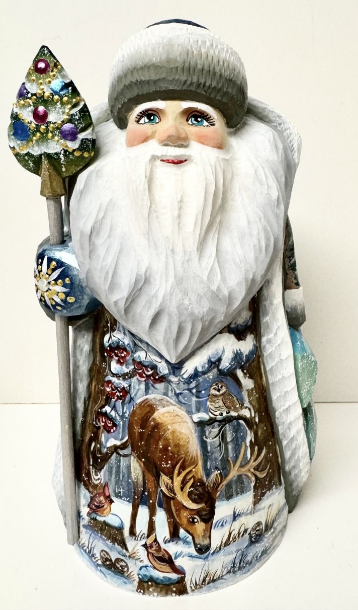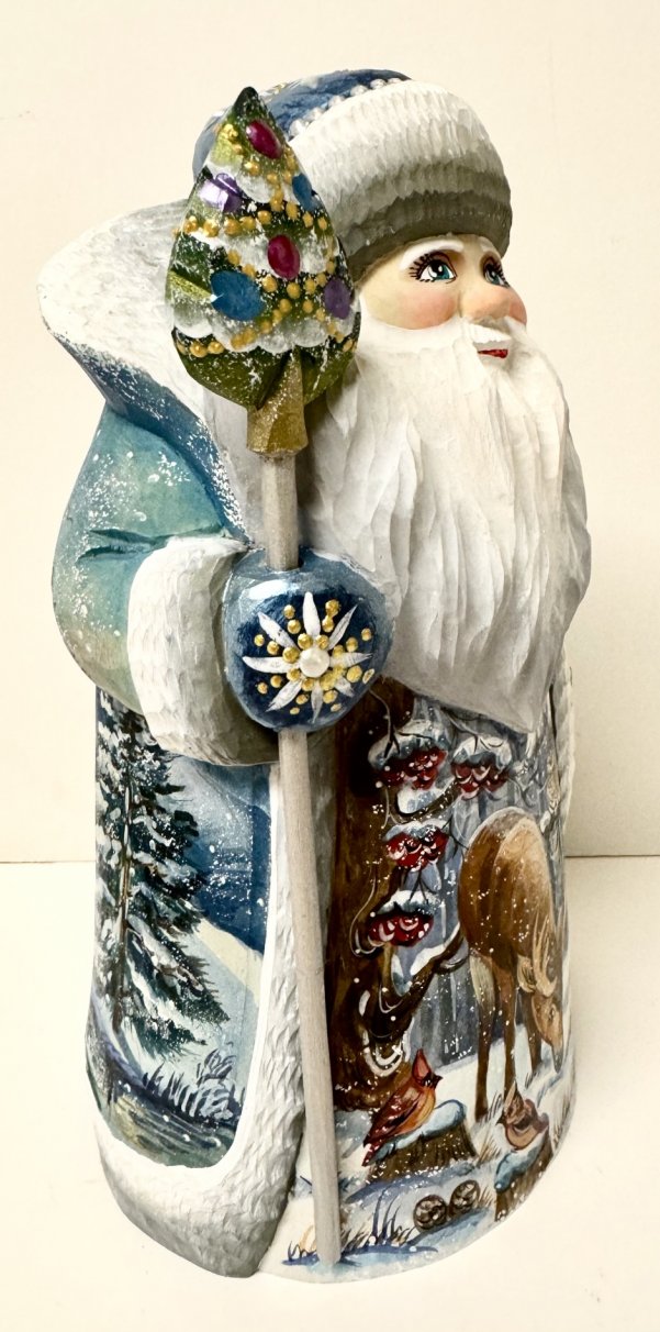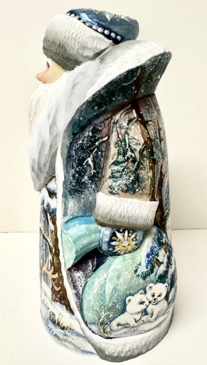 This Russian genuine Santa is handcrafted in Moscow, Russia: carved out of linden wood and painted with acrylic. Workshop "Russkiy Dom", Moscow, Russia.