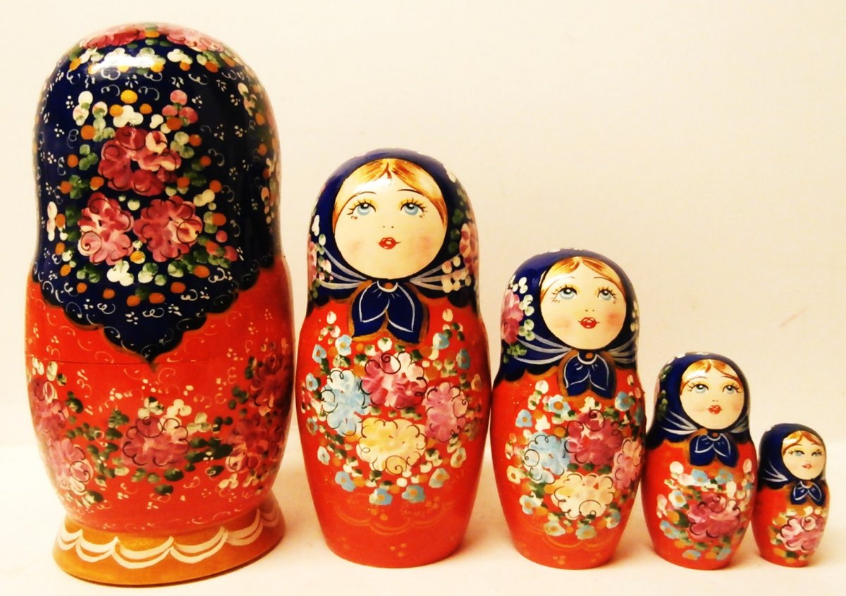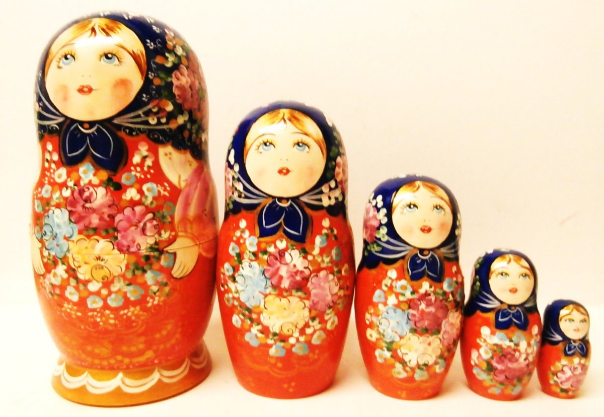 This nesting doll is crafted by hand: made out of linden wood and painted with acrylic. Workshop "Svetlana", Moscow, Russia.