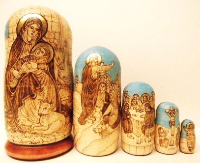 "Nativity", 7.25"H, n27ta, Russian Nesting Doll, Burning