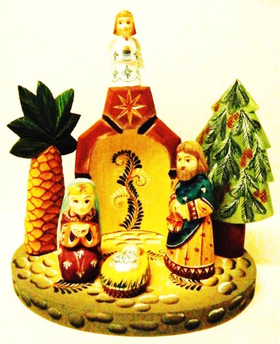 This work is crafted by hand and painted with acrylic. Workshop "Russkiy Dom", Moscow, Russia. 7.5"H x 7"W