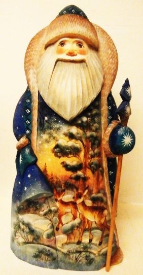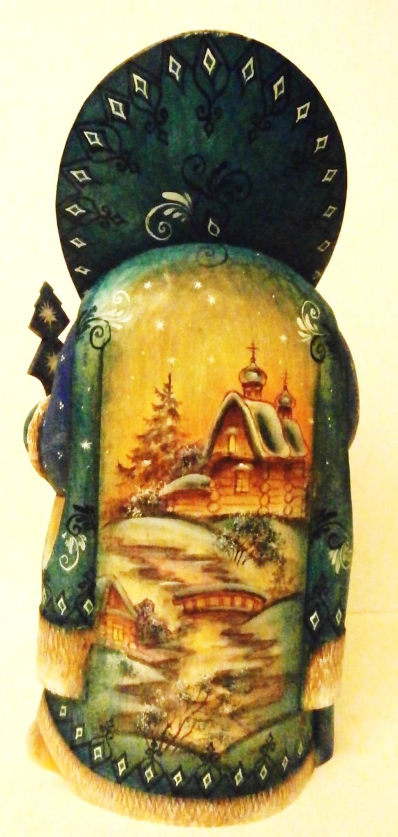 This Russian genuine Santa is handcrafted in Moscow, Russia: carved out of linden wood and painted with watercolor. Workshop "Russkiy Dom", Moscow, Russia.