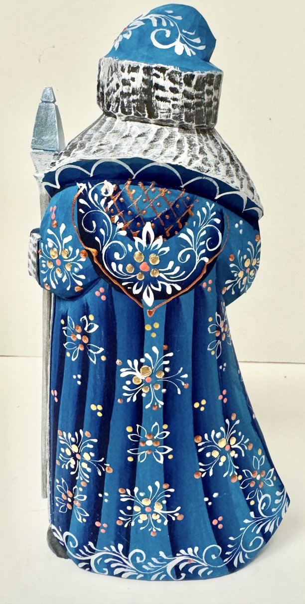This Russian genuine Santa is handcrafted in Moscow, Russia: carved out of linden wood and painted with acrylic. Workshop "Russkiy Dom", Moscow, Russia.