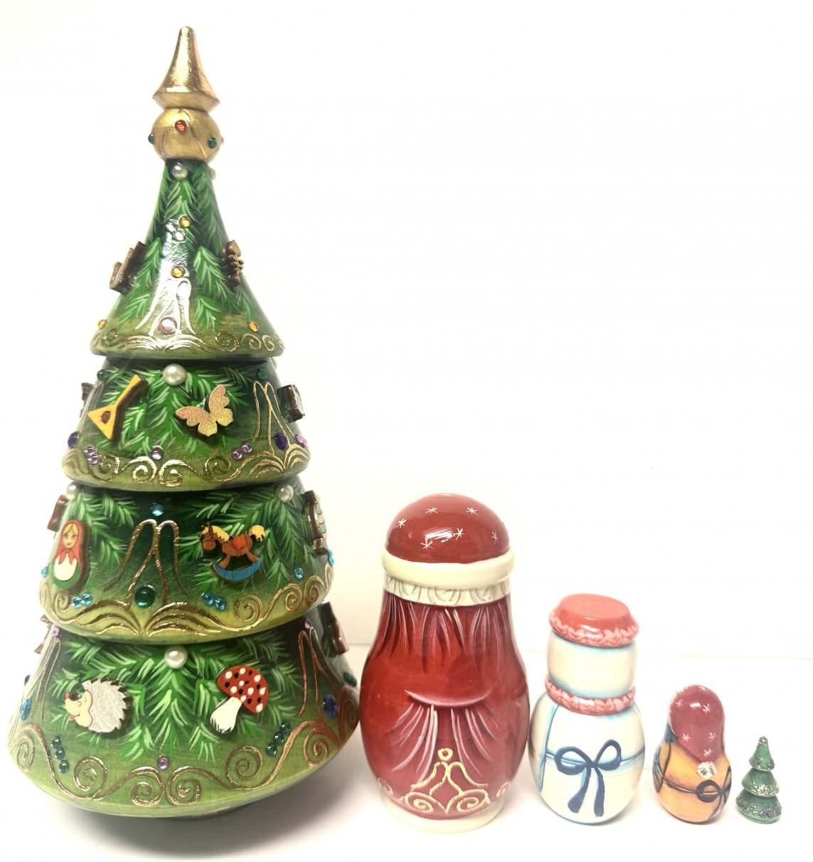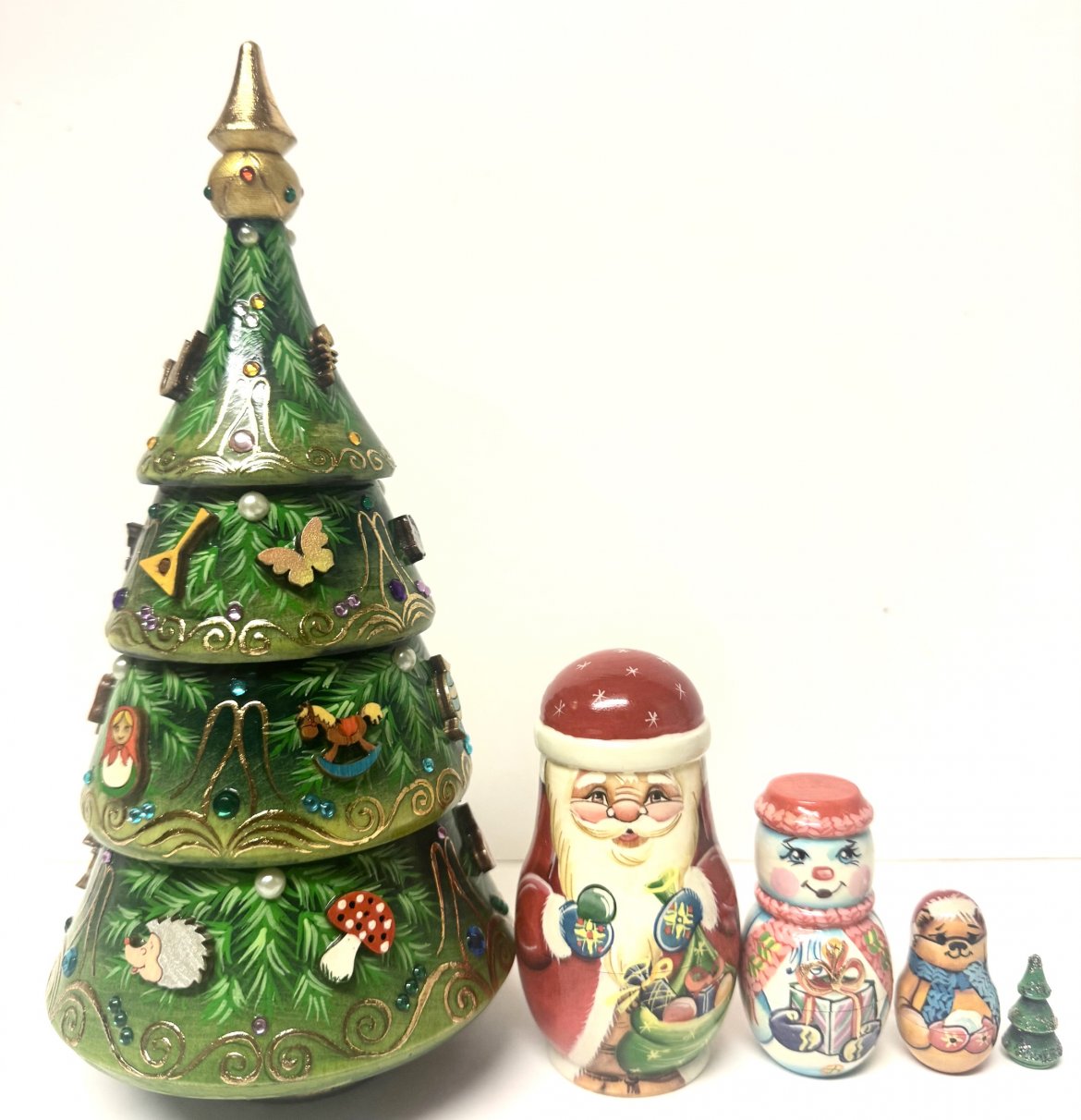 This wooden nesting doll is handcrafted in Moscow, Russia: made out of linden wood and painted with acrylic.