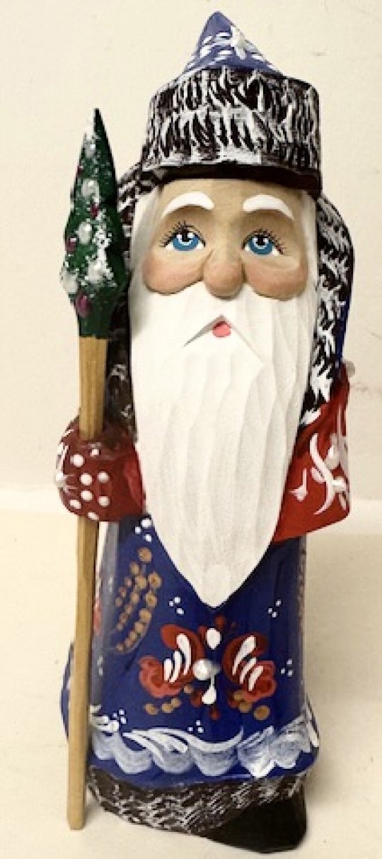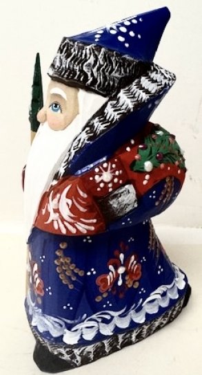 This Santa is hand carved out of linden wood and painted by hand with acrylic. The workshop "Viktor", Moscow, Russia.