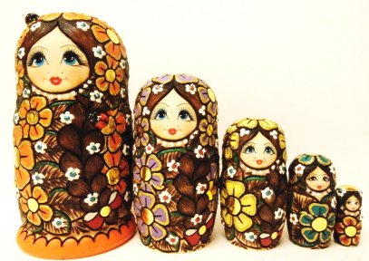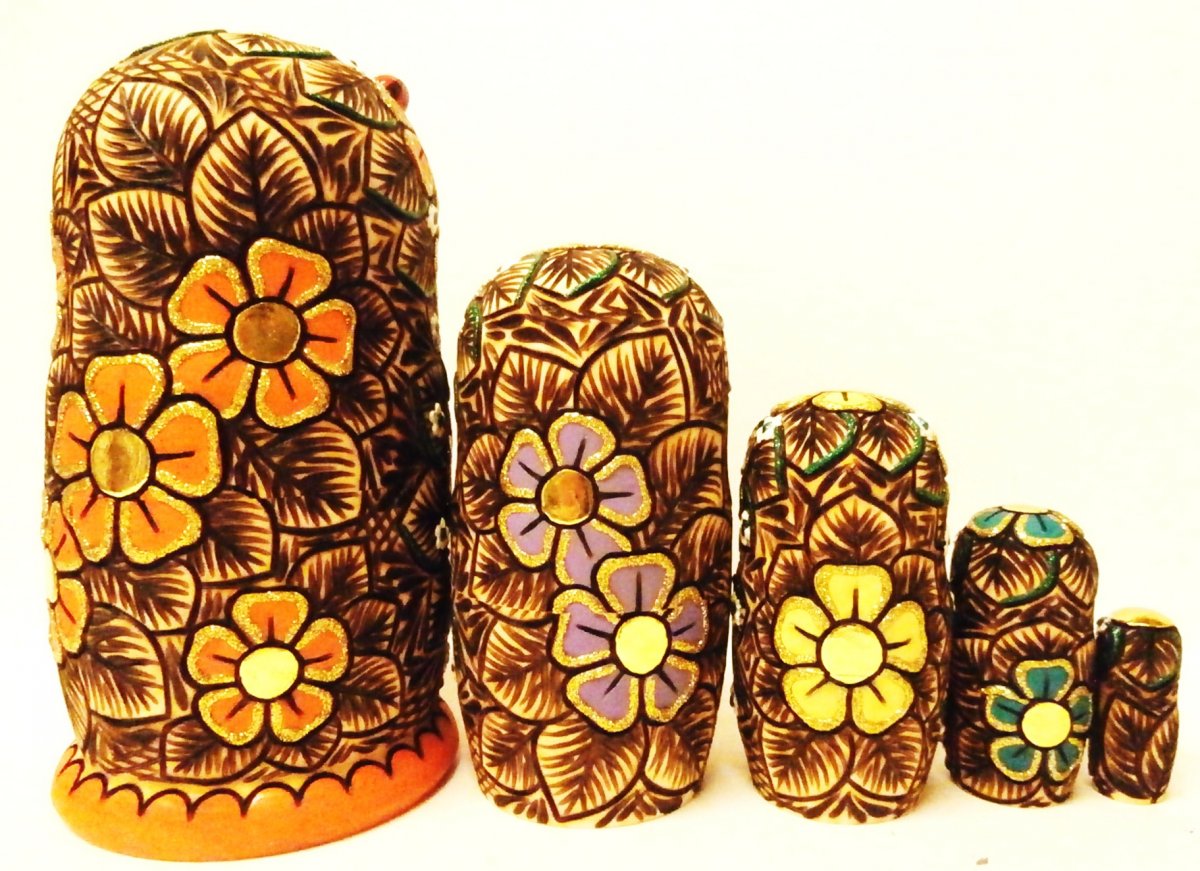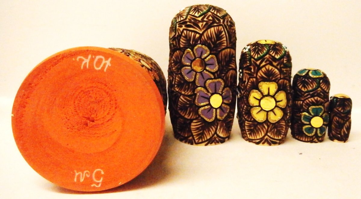 This nesting doll is crafted by hand: made out of linden wood and painted with acrylic. Workshop "Svetlana", Moscow, Russia.