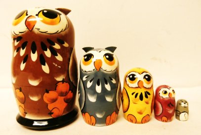 "Owls Family", 3.7"H, n35g, Russian Nesting Doll