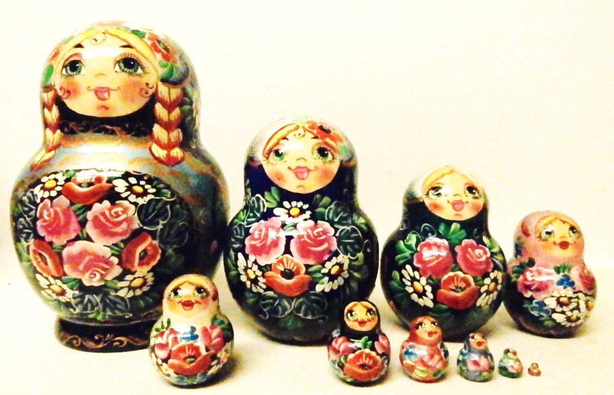 This nesting doll is crafted by hand in Russia: made out of linden wood and painted with acrylic. Workshop "Kvitok". Different shawls's color available.