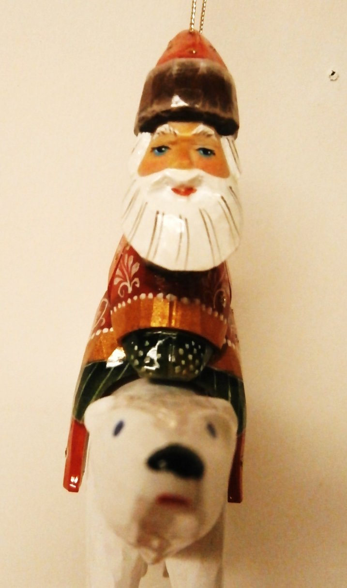 This Christmas ornament is crafted by hand: carved out of linden wood and painted with acrylic. Workshop "Skripkar", Moscow, Russia.
