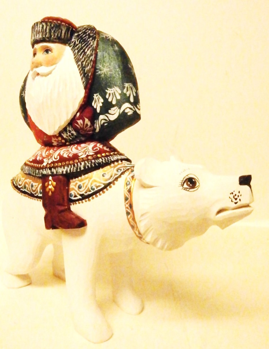 "On Polar Bear", 6.5"H, sk139c, Russian Wooden Santa