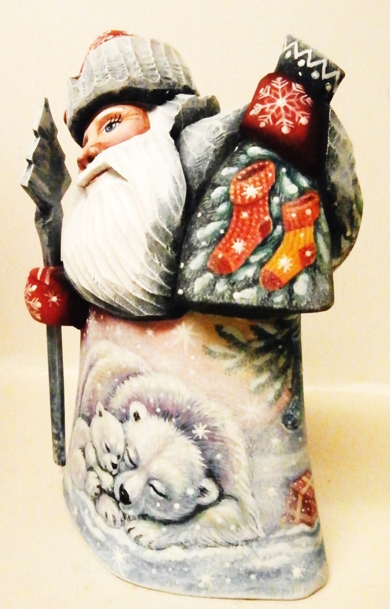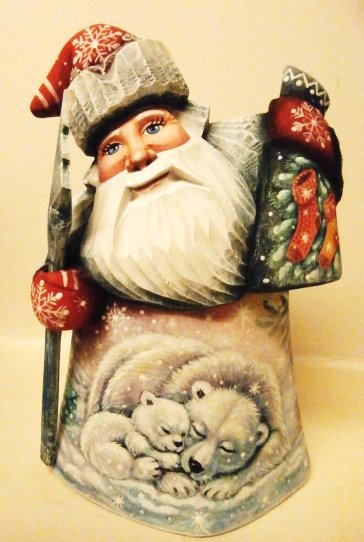 "Polar Bears", 7"H sk121, Russian Wooden Santa