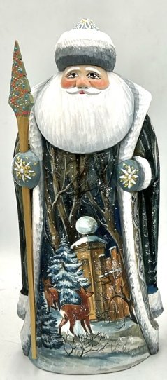 This Russian genuine Santa is handcrafted in Moscow, Russia: carved out of linden wood and painted with acrylic. 11-12"H. Workshop "Russkiy Dom", Moscow, Russia.