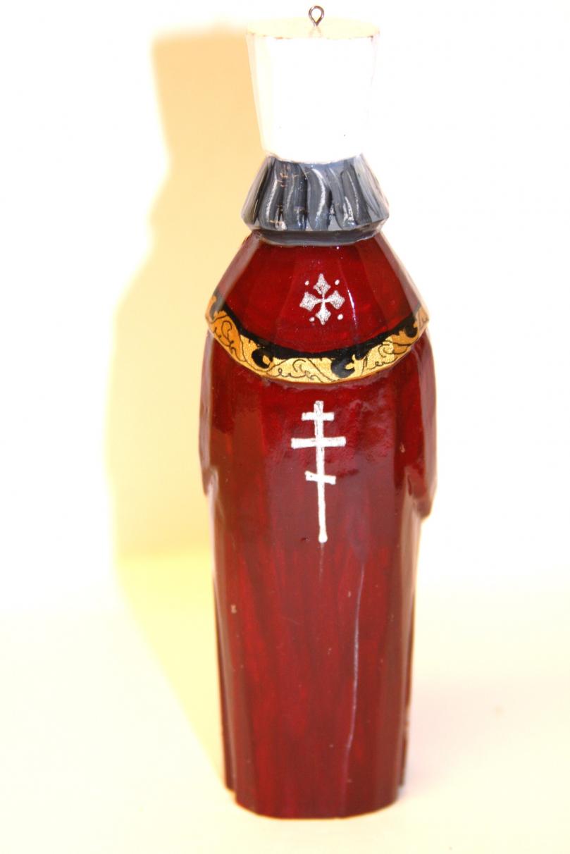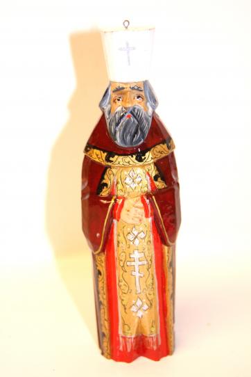 This ornament is crafted by hand out of linden wood and painted with acrylic in the town of Sergiyev Posad, Russia.