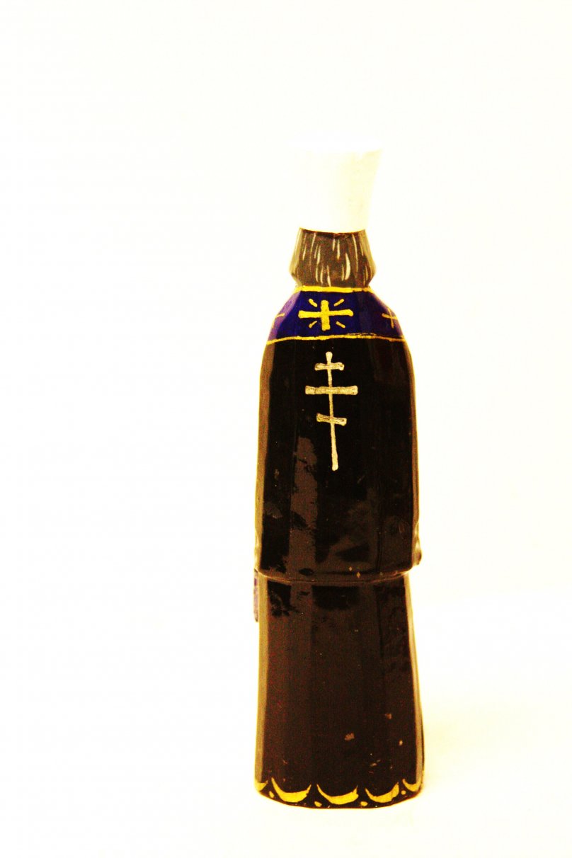 This Christmas ornament is crafted by hand: carved out of linden wood and painted with acrylic. The priest is decorated in Holiday robes. He carries an icon in his hands.