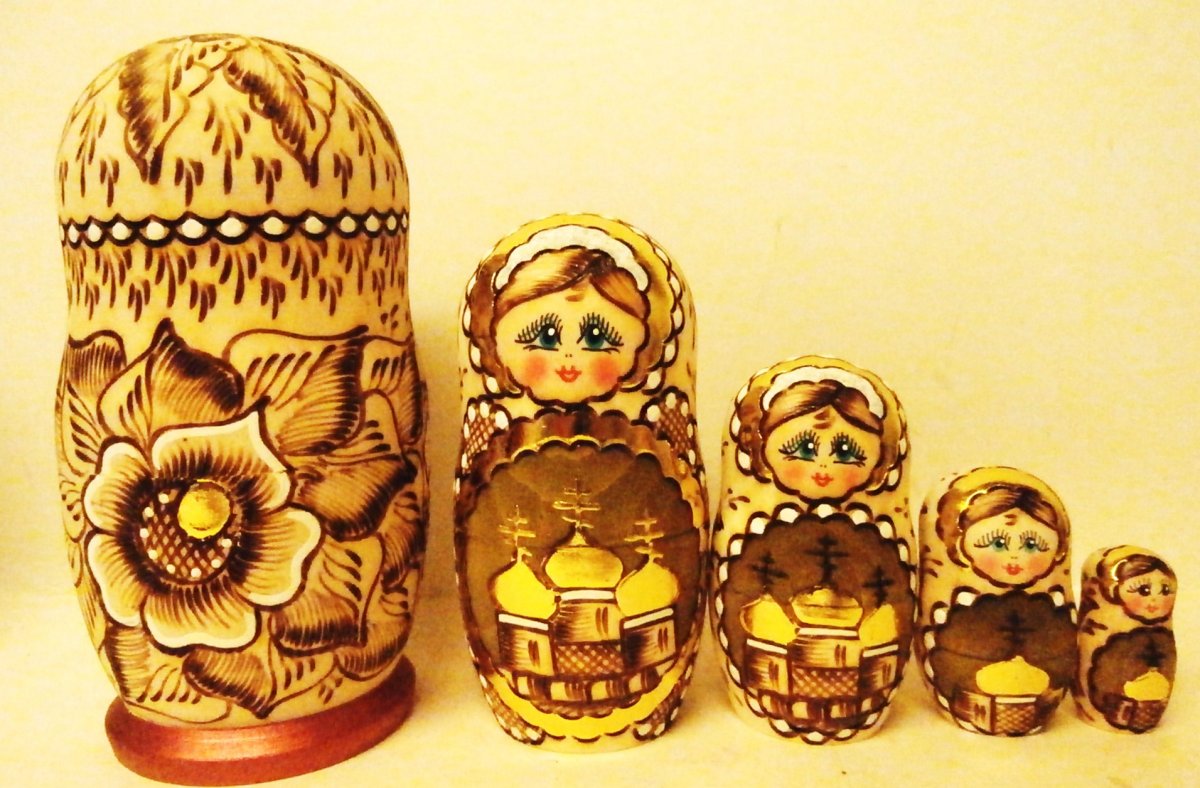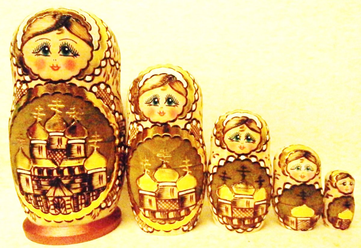 Linden wood, painted and burned on wood by hand in Russia. 7"H