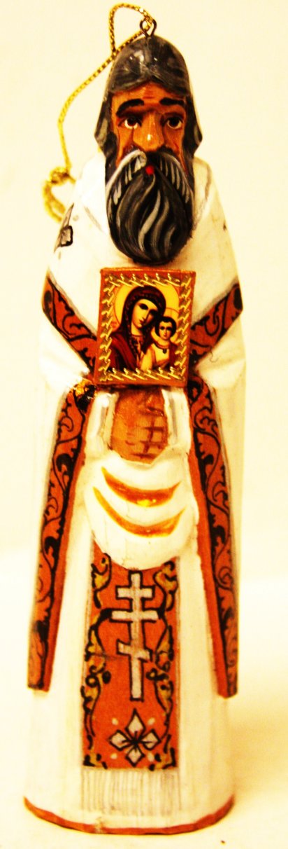 "Russian Priest in Green Robe", 6", o21b, Russian Wooden Christmas Ornament