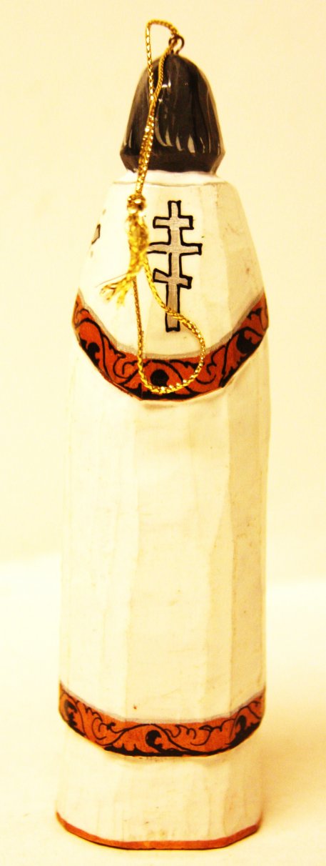 This priest is crafted by hand: carved out of linden wood and painted with acrylic. Limited. Workshop "Skripkar", Moscow, Russia.