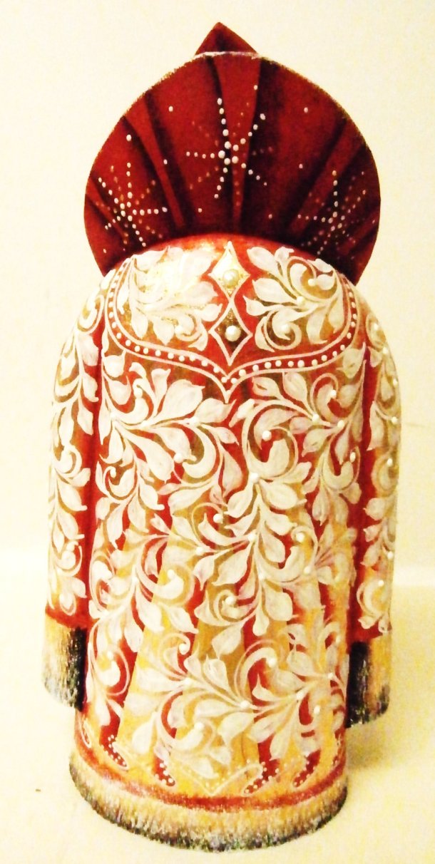 This Russian genuine Santa is handcrafted in Moscow, Russia: carved out of linden wood and painted with acrylic. Workshop "Russkiy Dom", Moscow, Russia.