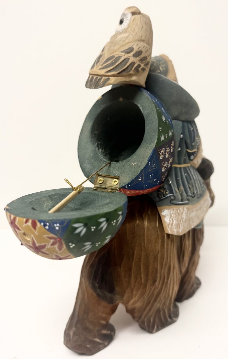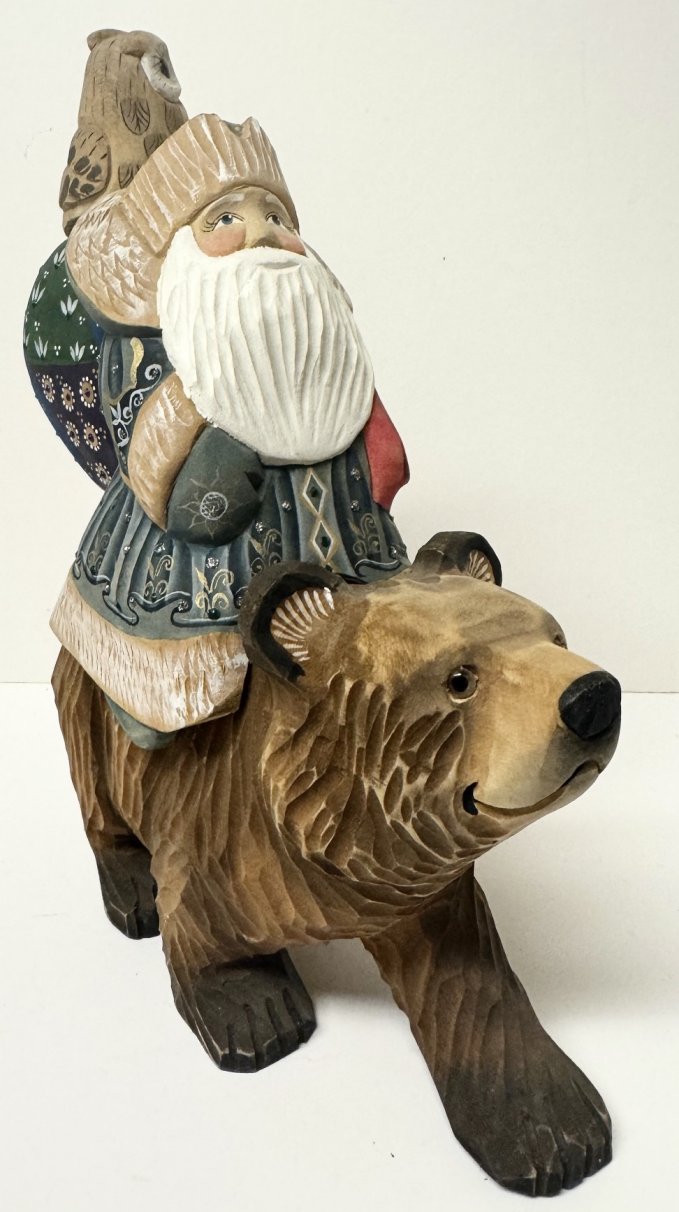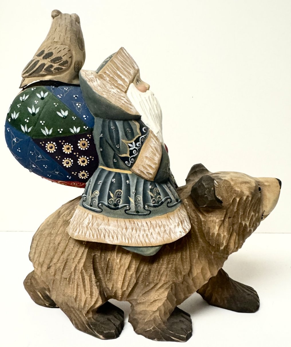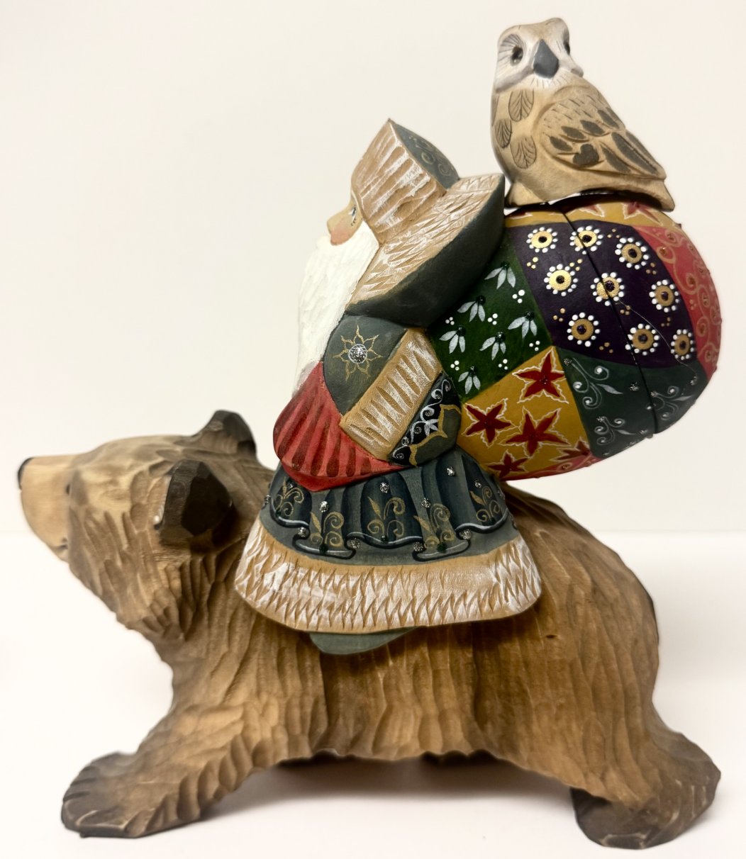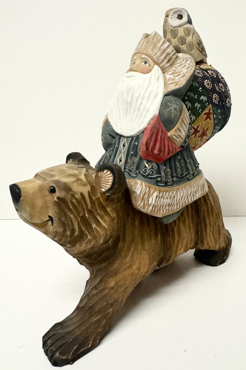 "Santa on the Bear with Owl", 9"H x 7.5"W, s61a, Russian Santa