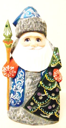 "Santa with Christmas Tree", 5"H, sc135, Russian Wooden Santa