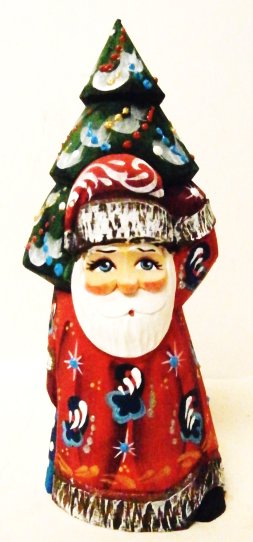 This Russian genuine Santa is handcrafted in Moscow, Russia: carved out of linden wood and painted with acrylic. Workshop "Russkiy Dom", Moscow, Russia.