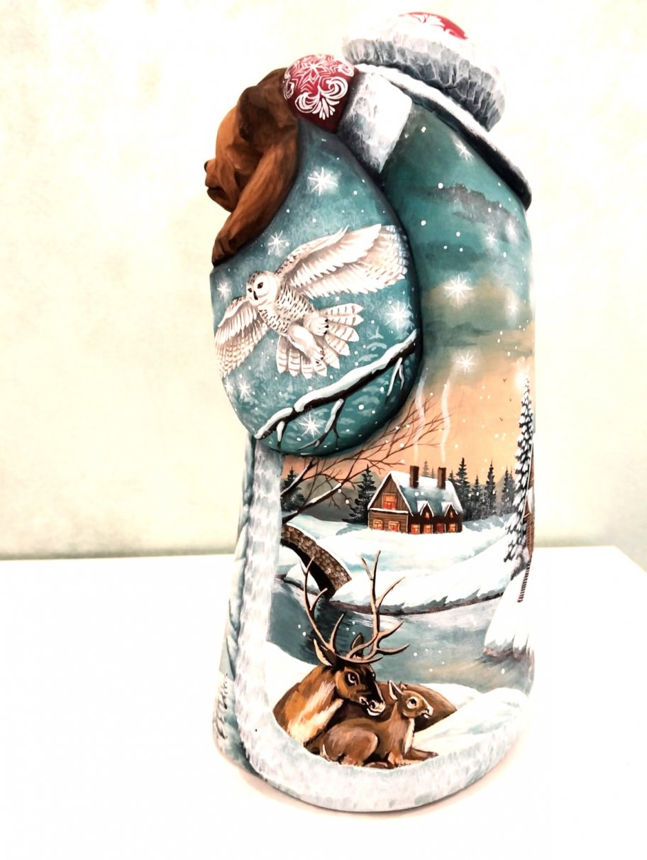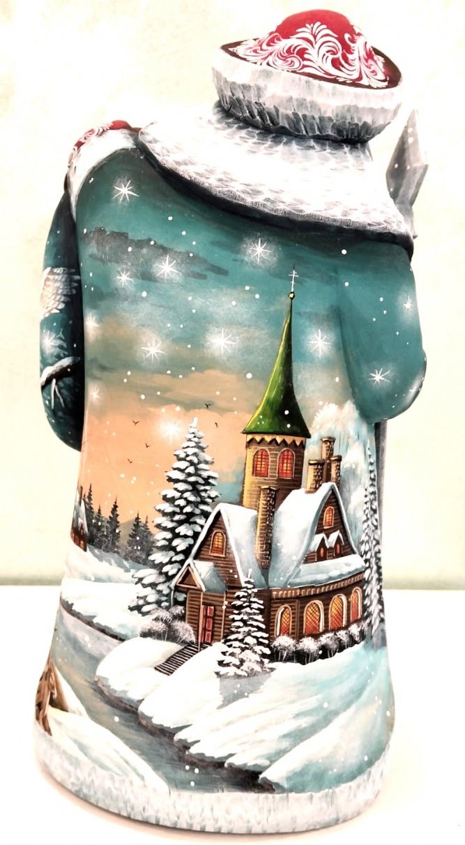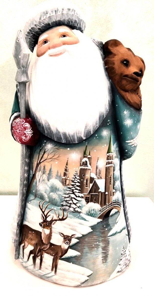 This Santa Claus is crafted by hand: intricately carved out of linden wood and meticulously painted with acrylic. Workshop "Russkiy Dom". Unique