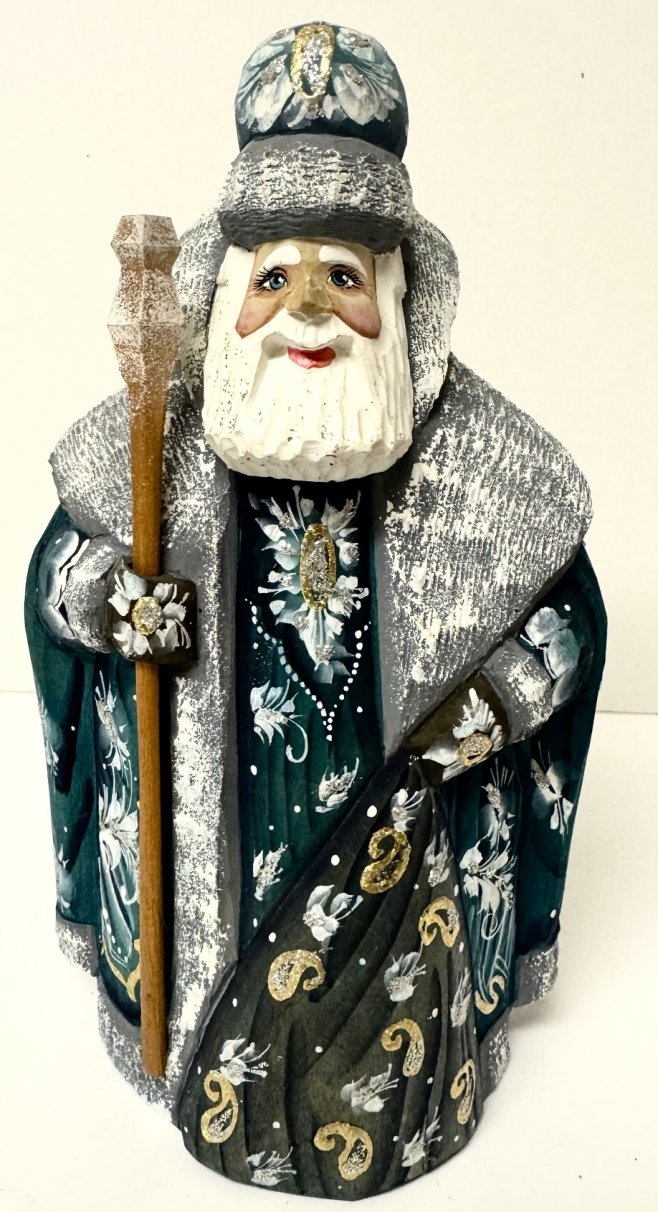 This Santa is crafted by hand: carved out of linden wood and painted with acrylic. 8"H