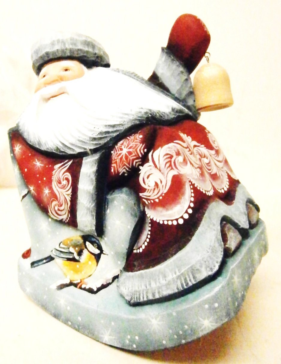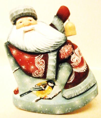This Russian genuine Santa is handcrafted in Moscow, Russia: carved out of linden wood and painted with acrylic. Workshop "Russkiy Dom", Moscow, Russia.