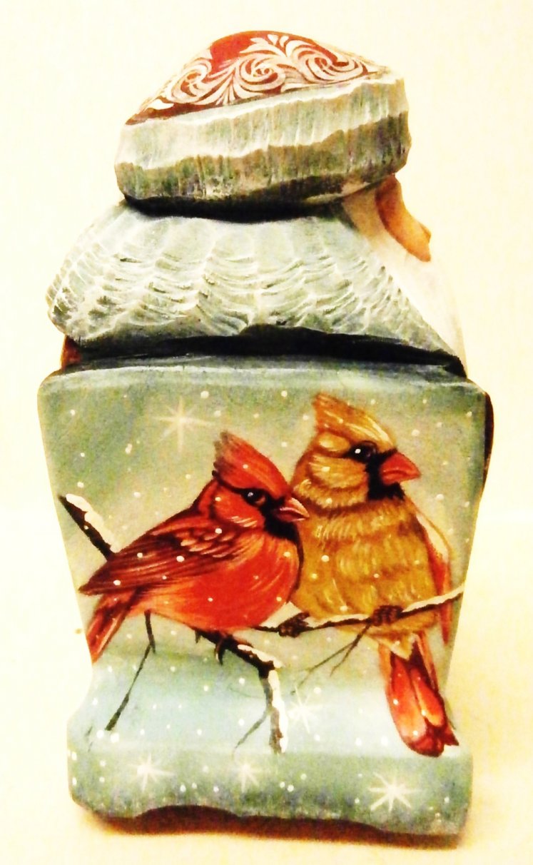 "Santa on the Sled with Birds", 5"H s980, Russian Wooden Santa