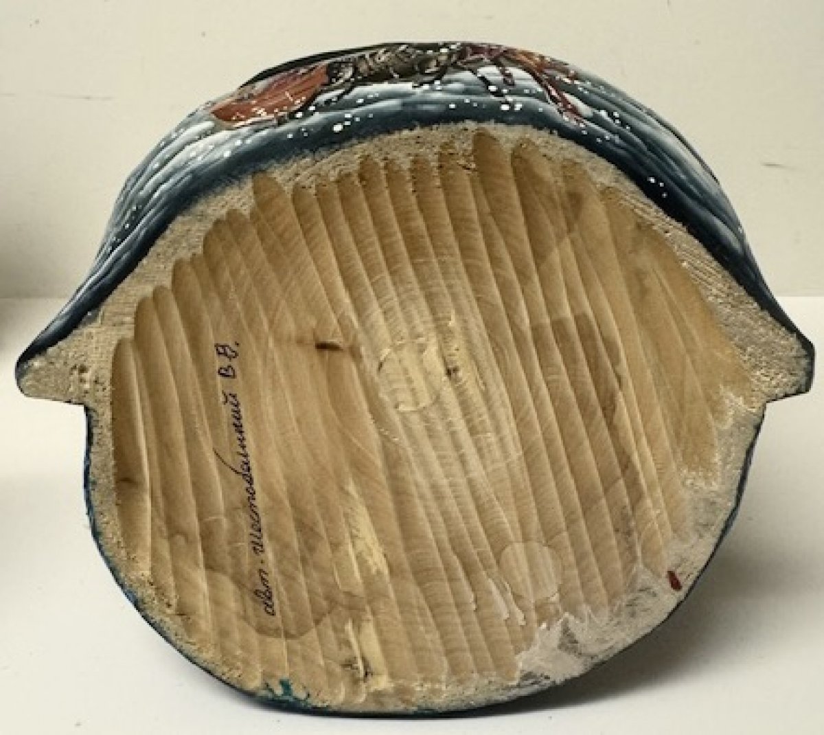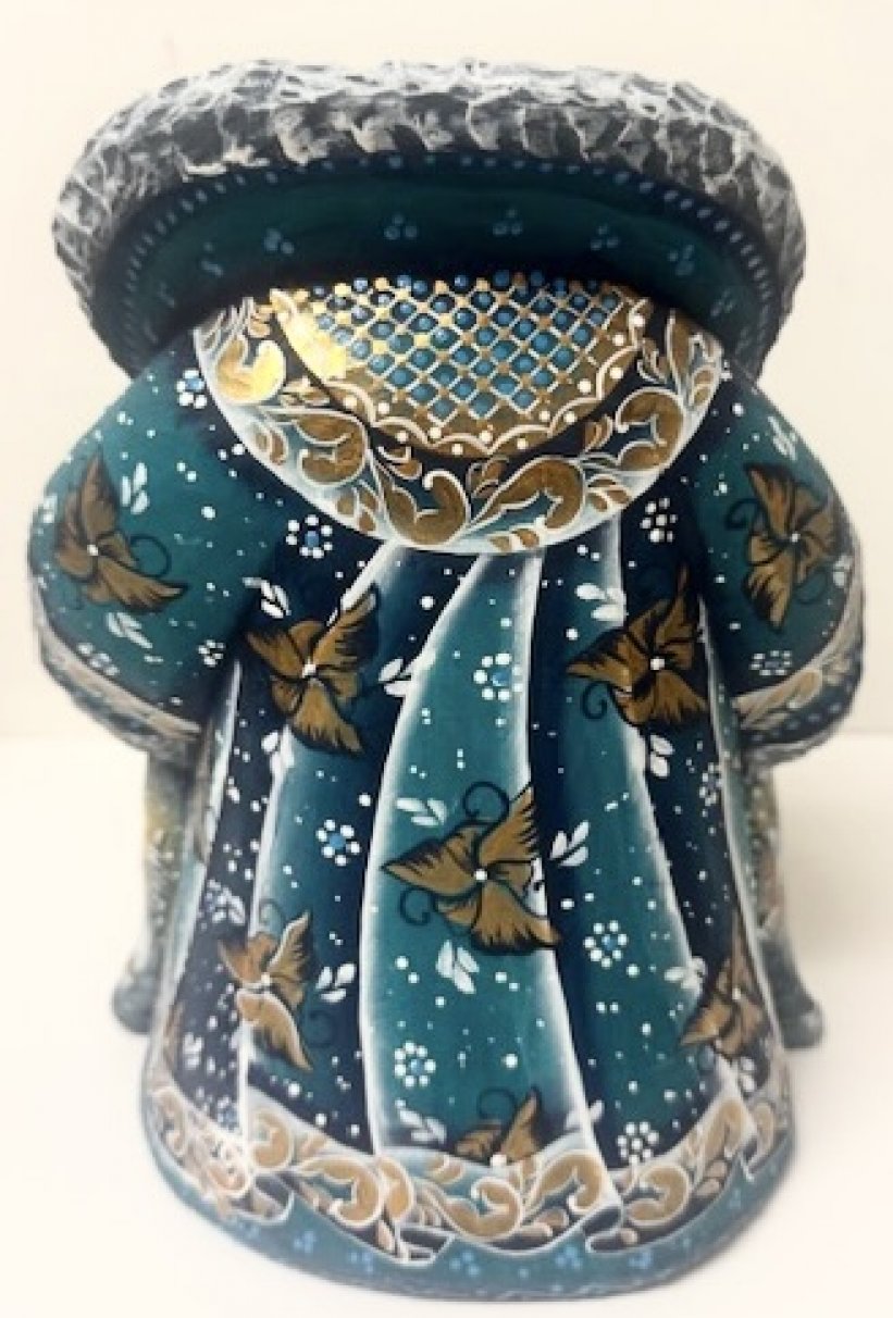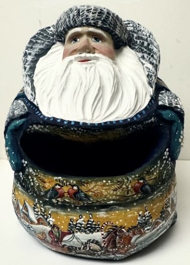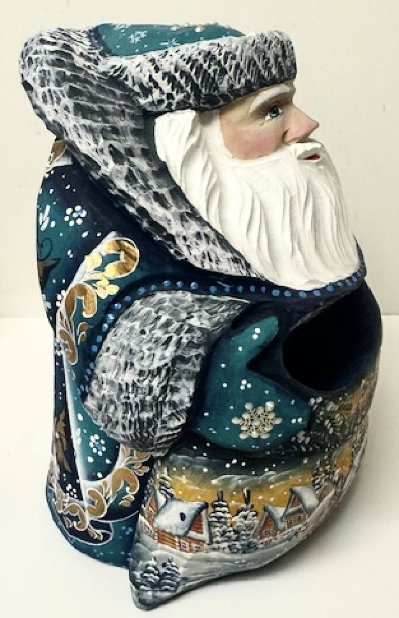 This Santa is crafted by hand: carved out of linden wood and painted with acrylic. 8"H