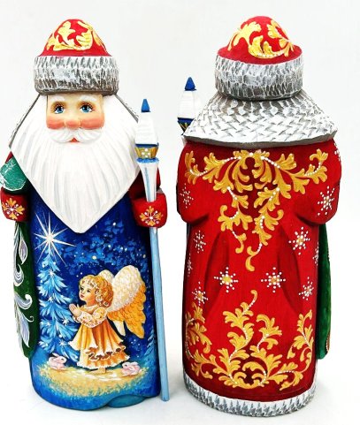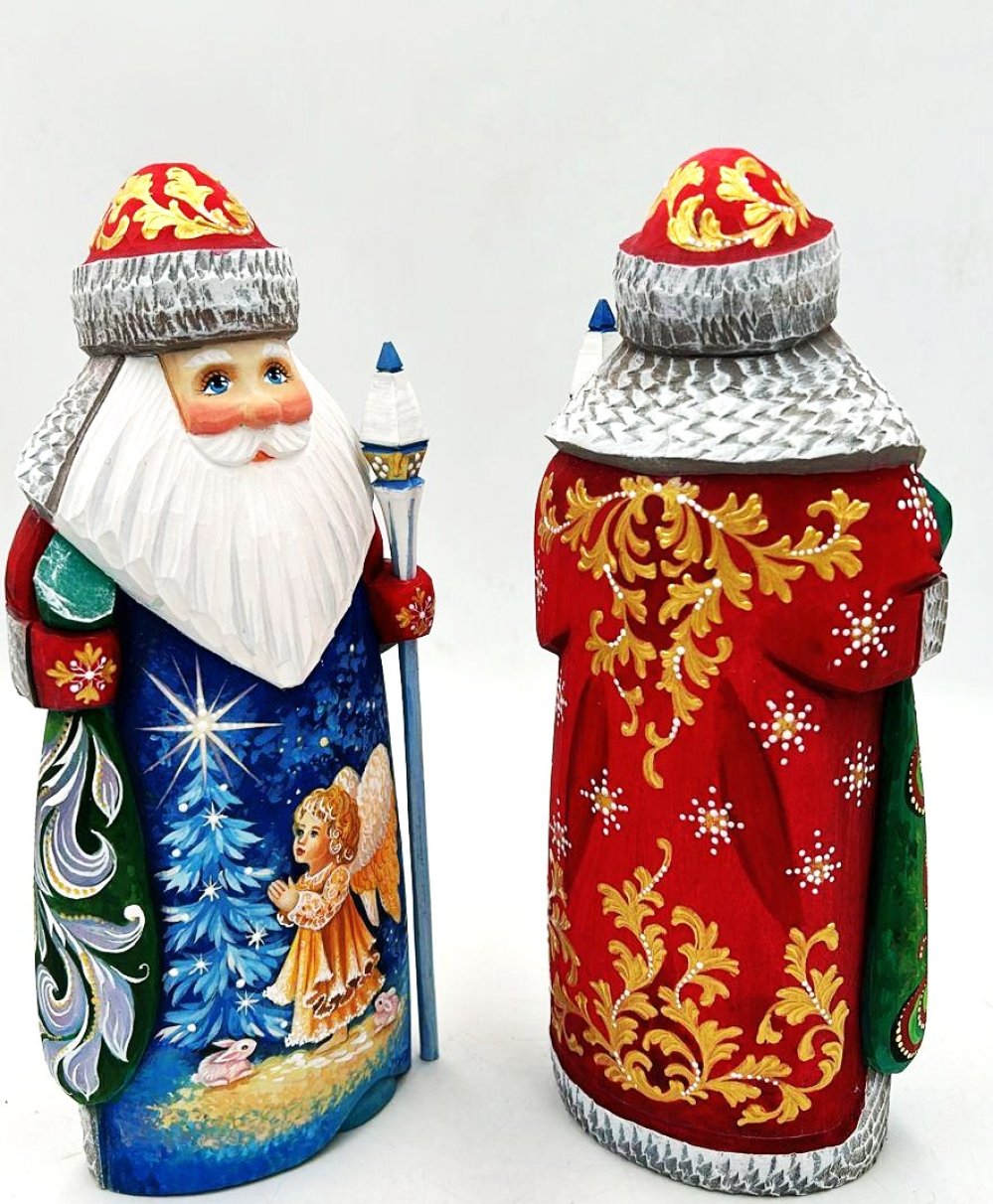 This Russian genuine Santa is handcrafted in Moscow, Russia: carved out of linden wood and painted with acrylic. Workshop "Russkiy Dom", Moscow, Russia.