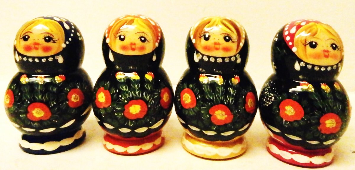 This nesting doll is crafted by hand: made out of linden wood and painted with acrylic. Workshop "Russkiy Dom", Moscow. Sells by 6 assorted colors.