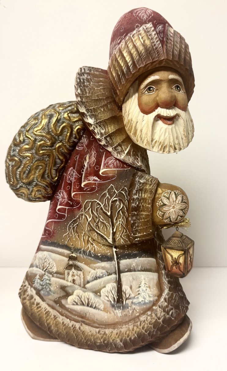 "Walkiing for Christmas", 11"H x 7"W, s60b, Russian Santa