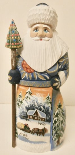 This Russian genuine Santa is handcrafted in Moscow, Russia: carved out of linden wood and painted with acrylic. 7.5"H. Workshop "Russkiy Dom", Moscow, Russia.