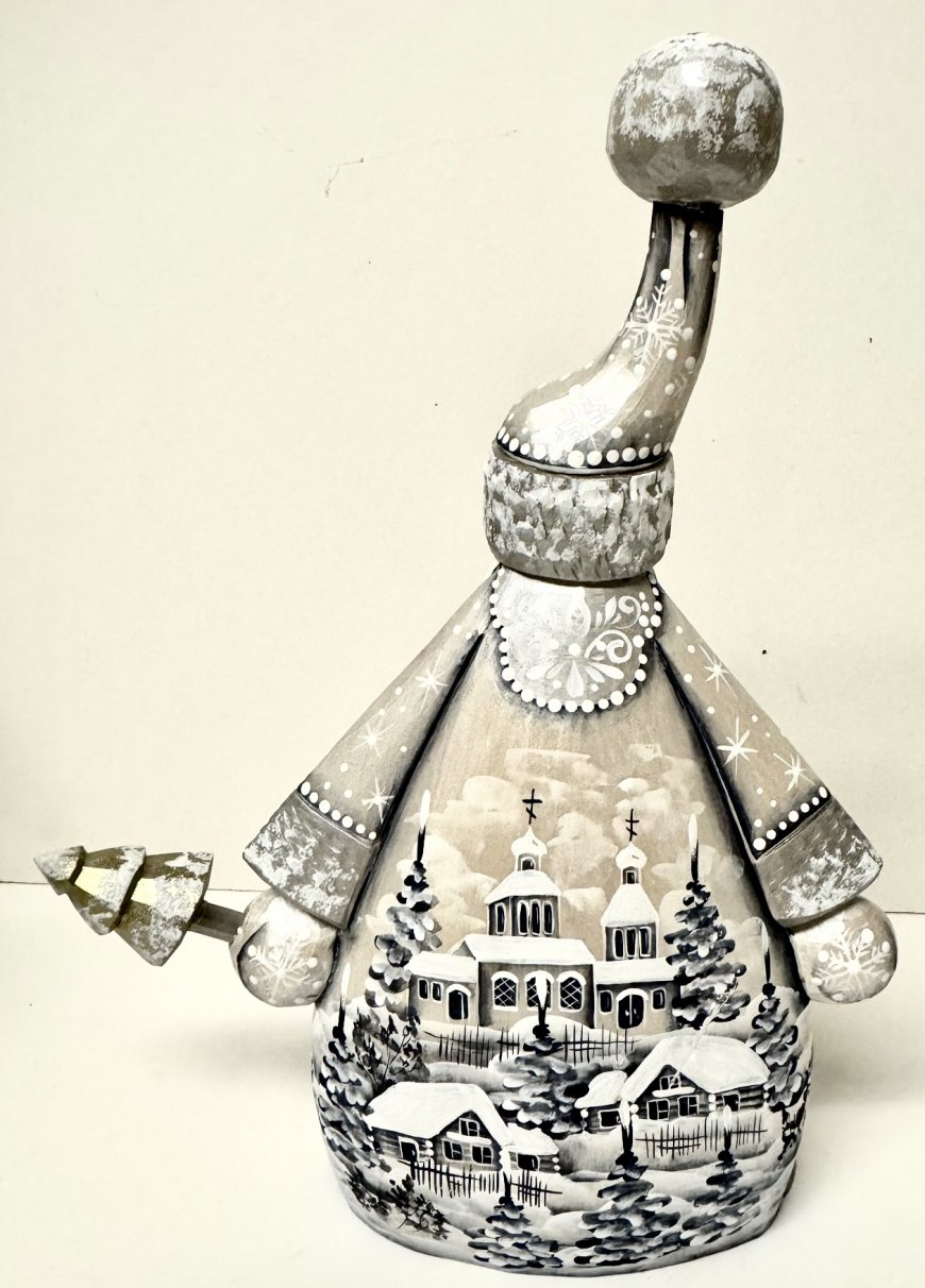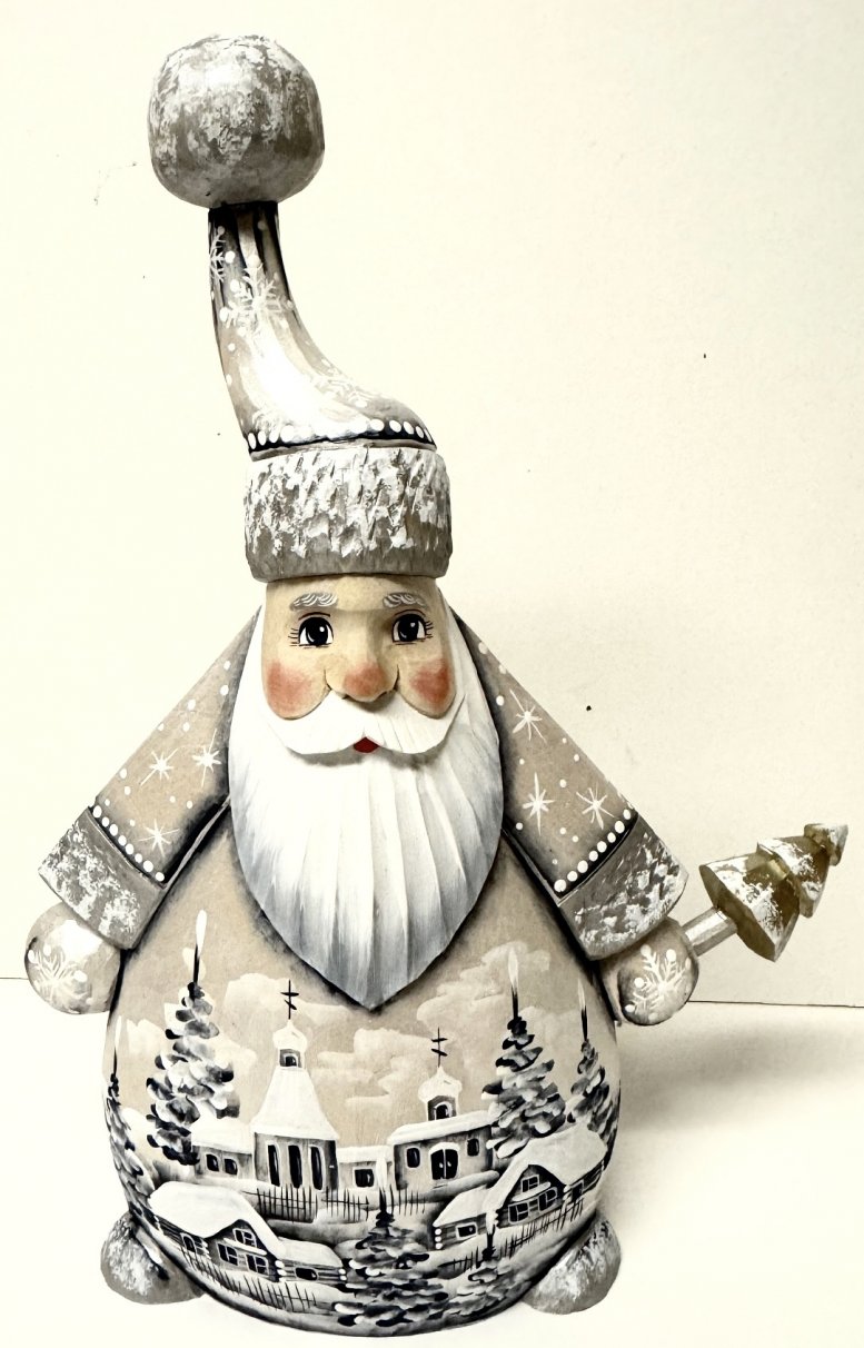 This Santa is crafted by hand: carved out of linden wood and painted with acrylic. 8"H